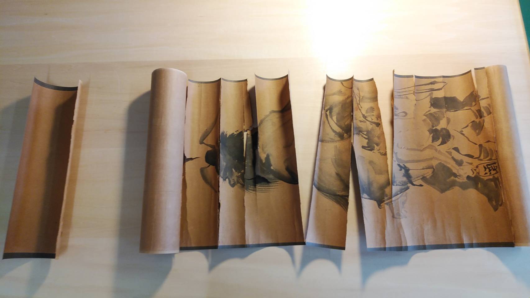 (折れていた部分は傷みが大きく、一部はつながっていますが作品がバラバラになってしまいます。)